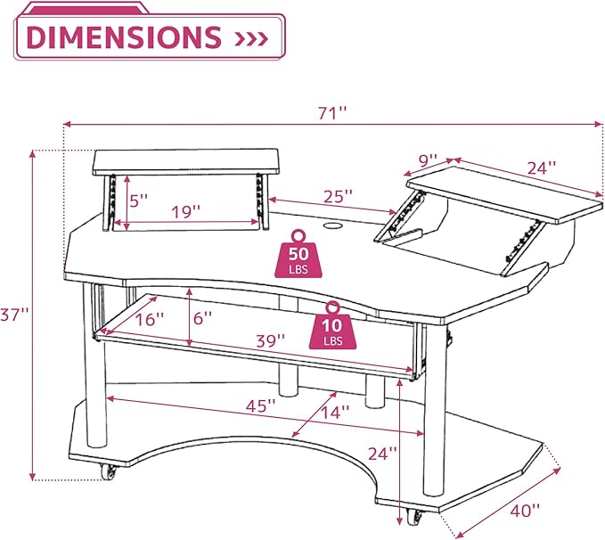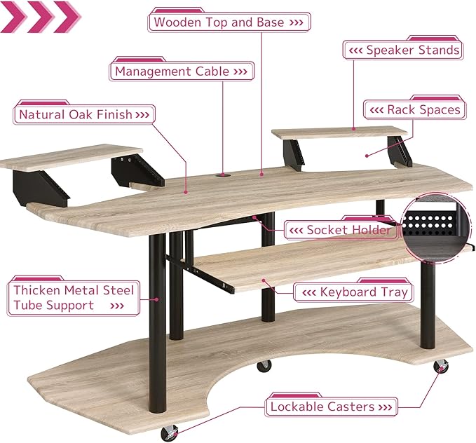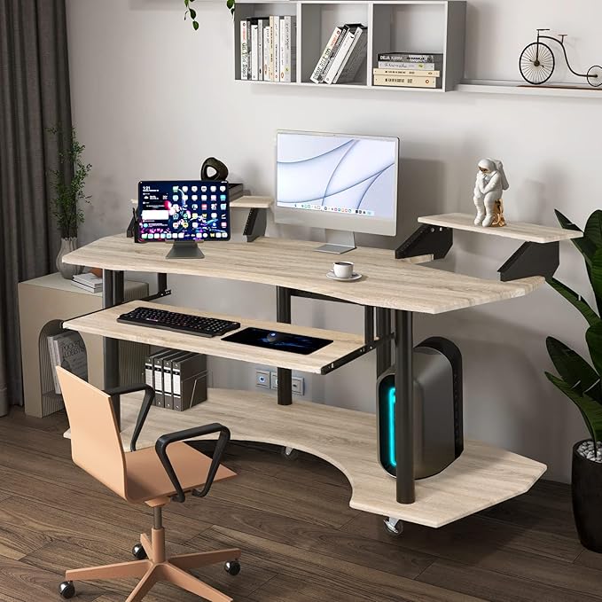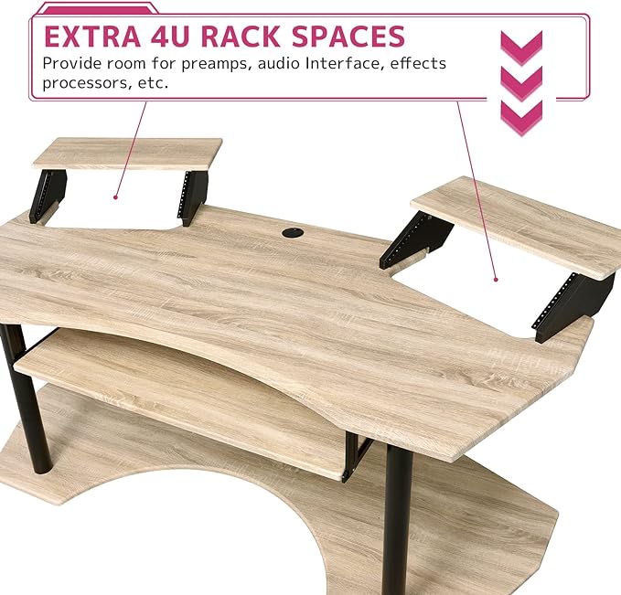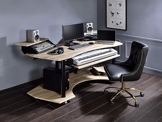 Acme Eleazar Wooden 3-Shelf Music Recording Studio Desk in Natural Oak