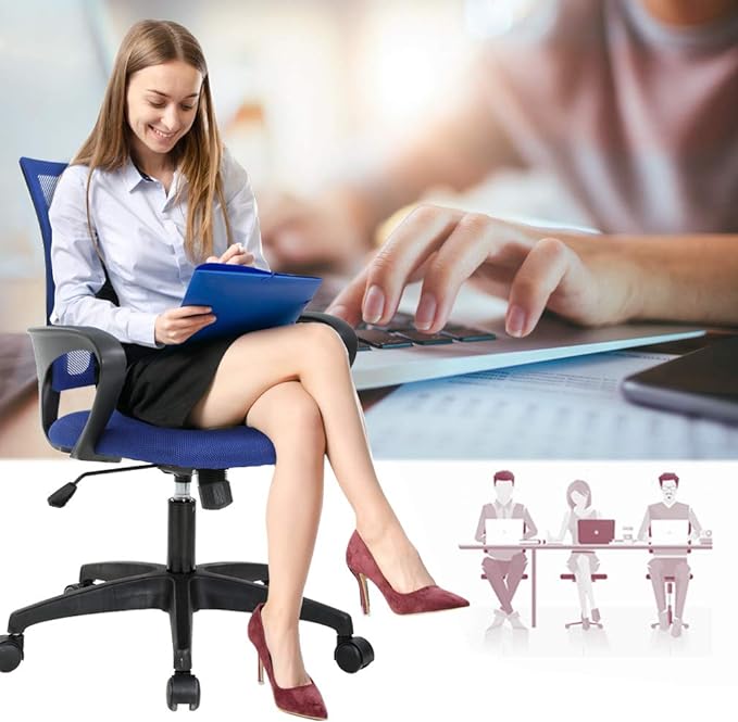 Office Chair Desk Chair Mesh Computer Chair with Lumbar Support Modern Executive Adjustable Chair Task Rolling Swivel Ergonomic Chair for Women Adults(Blue)