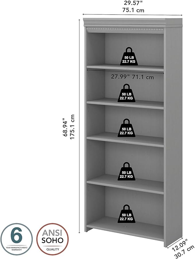 Bush WC53565-03 Fairview 5-Shelf 69-Inch H Bookcase, Cape Cod Gray