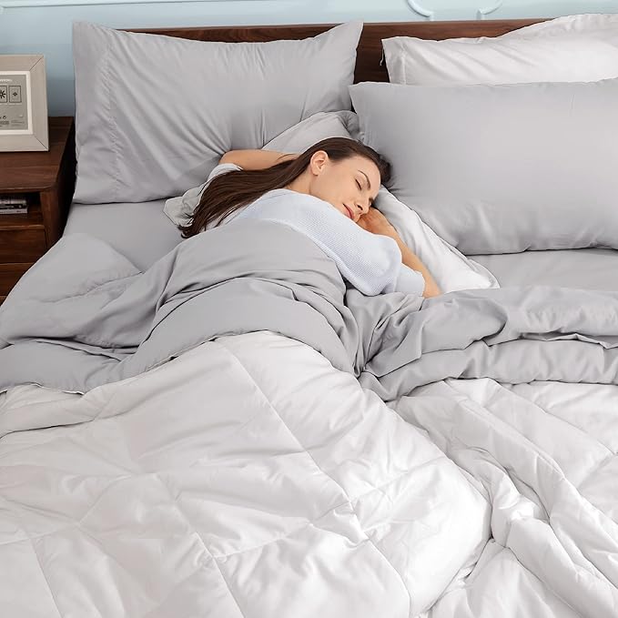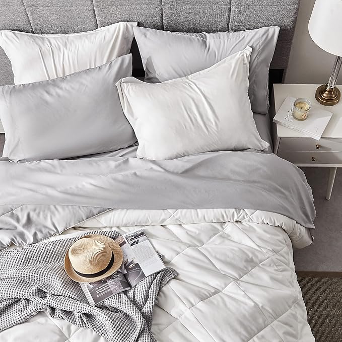 Bedsure White Twin Comforter Sets - 5 Pieces Reversible Twin Bedding Sets for College, White Extra Long Twin Bed Set with Comforters, Sheets, Pillowcase & Sham