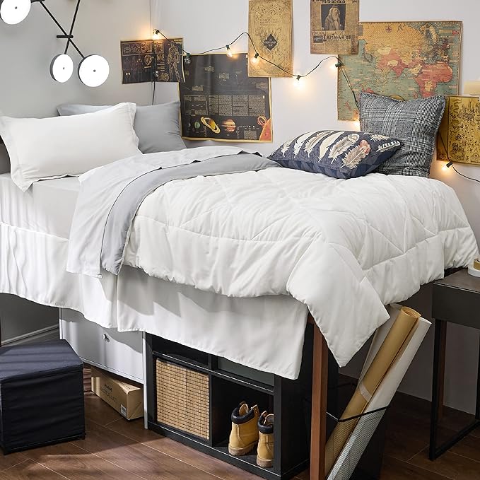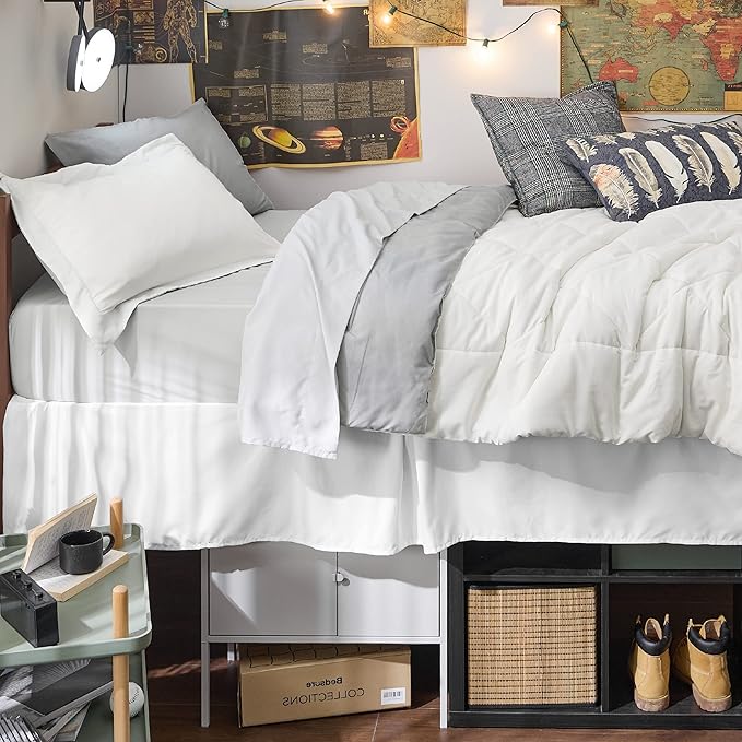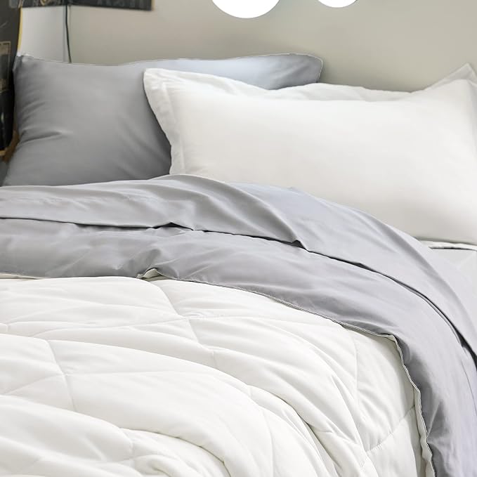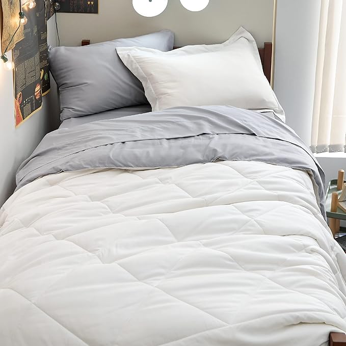 Bedsure White Twin XL Comforter Sets - 5 Pieces Reversible White Twin XL Bedding Sets with Comforters, Sheets, Pillowcase & Sham, Twin XL Bed Sets for College