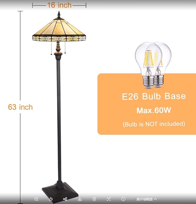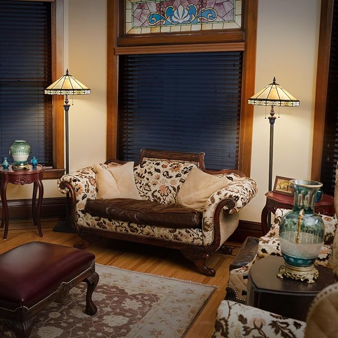 Capulina Tiffany Floor Lamp 2-Light 16x16x63 Inches Vintage Cream Style Stained Glass Standing Reading Lamp for Living Room Bedroom Office Home