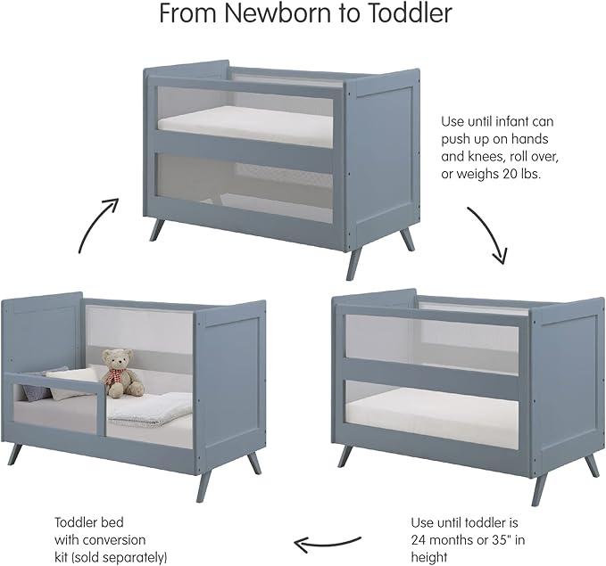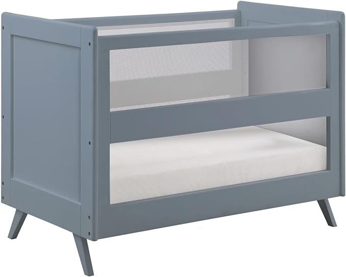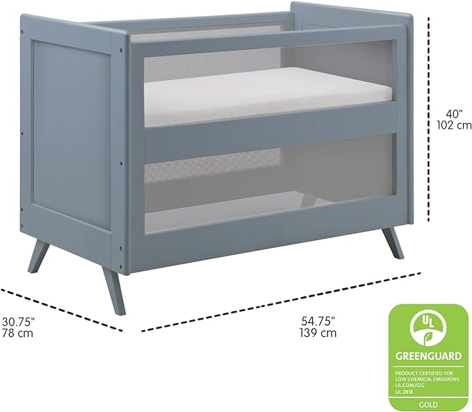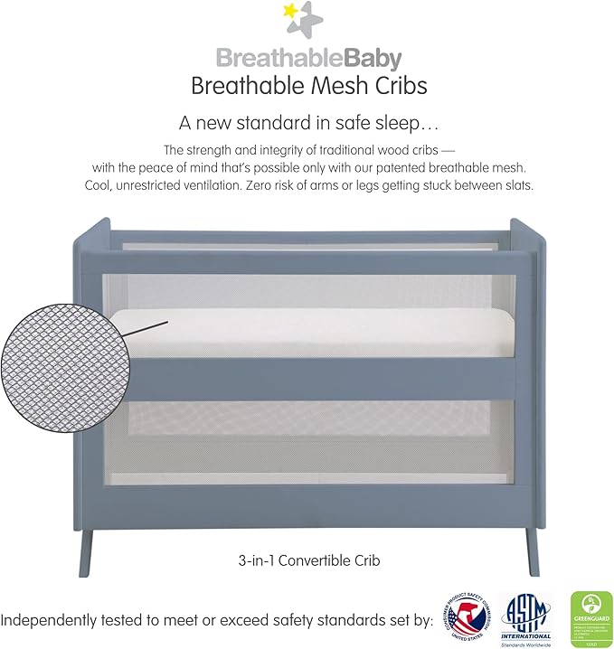 BreathableBaby Breathable Mesh 3-in-1 Convertible Crib (Toddler Bed Kit Sold Separately) — Steel Gray — Two Adjustable Mattress Heights — Greenguard Gold Certified