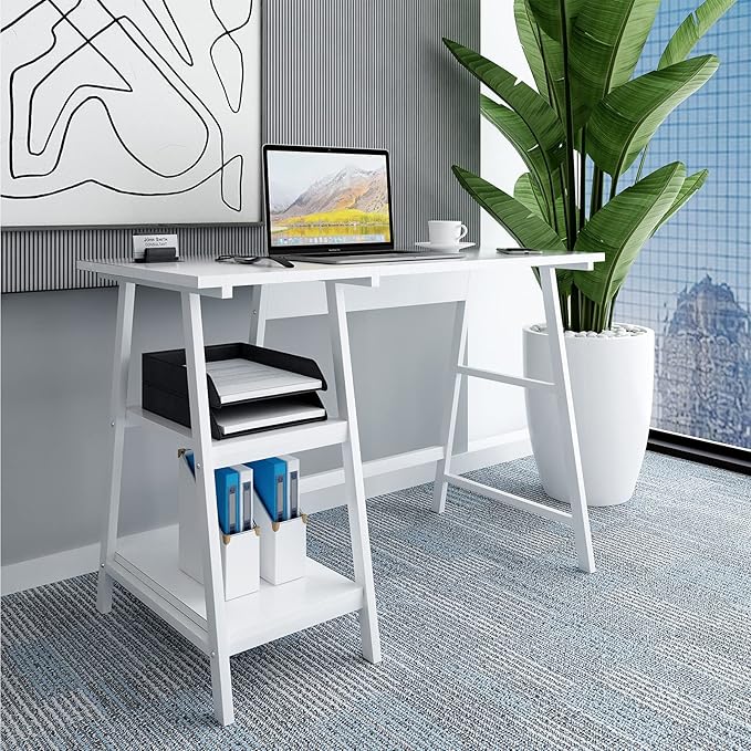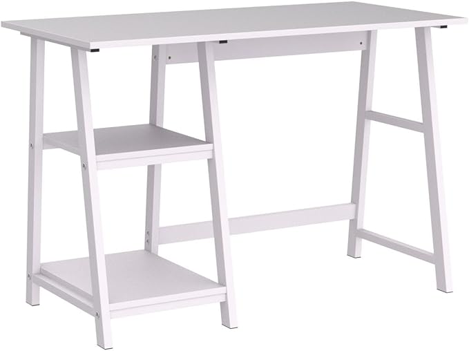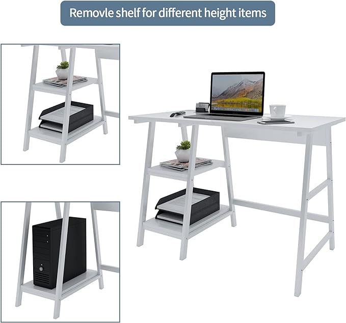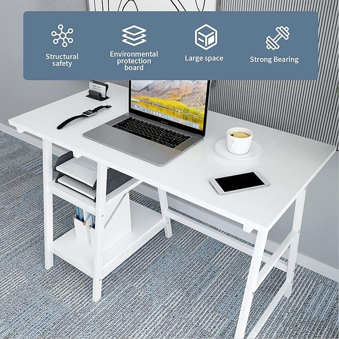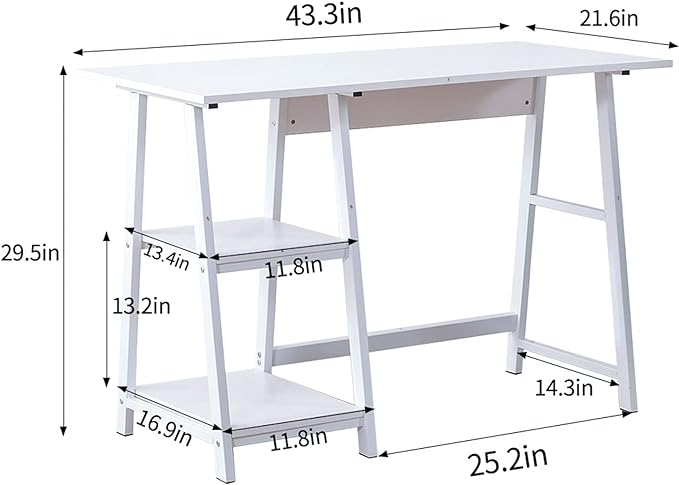 Natwind 43" White Desk Home Office Computer Working Kid Student Study Table with 2-Tier Storage Bookshelves Modern Simple Study Laptop Writing Elegant Style Desk Workstation