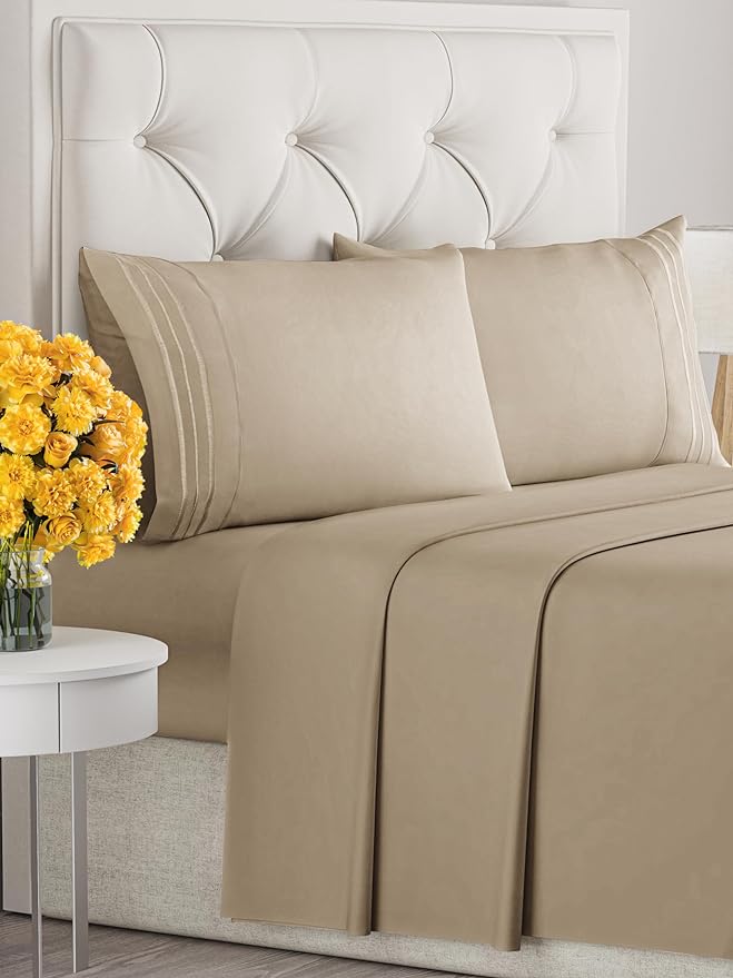 Full Size 4 Piece Sheet Set - Comfy Breathable & Cooling Sheets - Hotel Luxury Bed Sheets for Women & Men - Deep Pockets, Easy-Fit, Extra Soft & Wrinkle Free Sheets - Cream Oeko-Tex Bed Sheet Set
