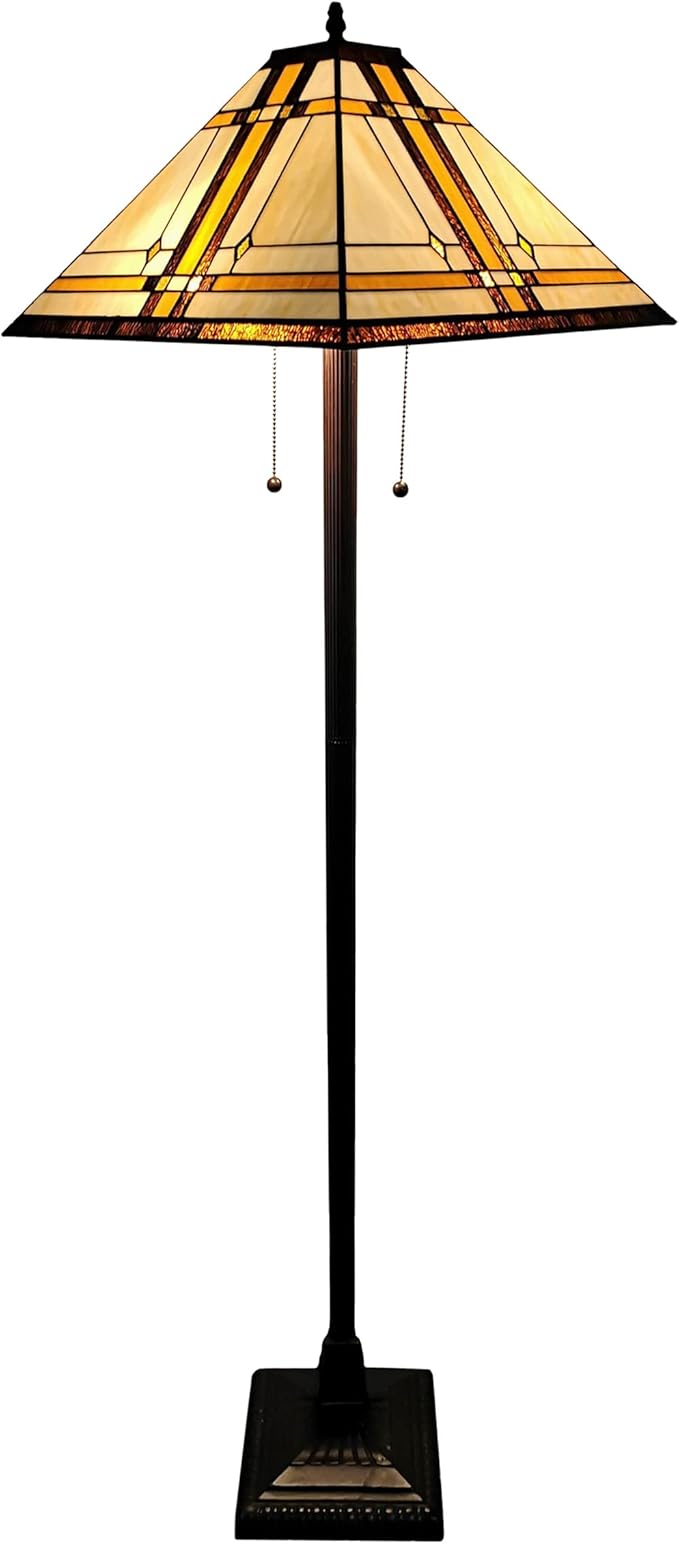 Amora Tiffany Floor Lamp Torchiere - Vintage Standing Light Floor Lamp - 61” Tall Floor Stained Glass Lamp - Tiffany Floor Lamps for Living Room
