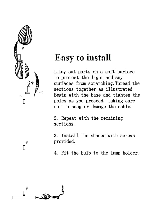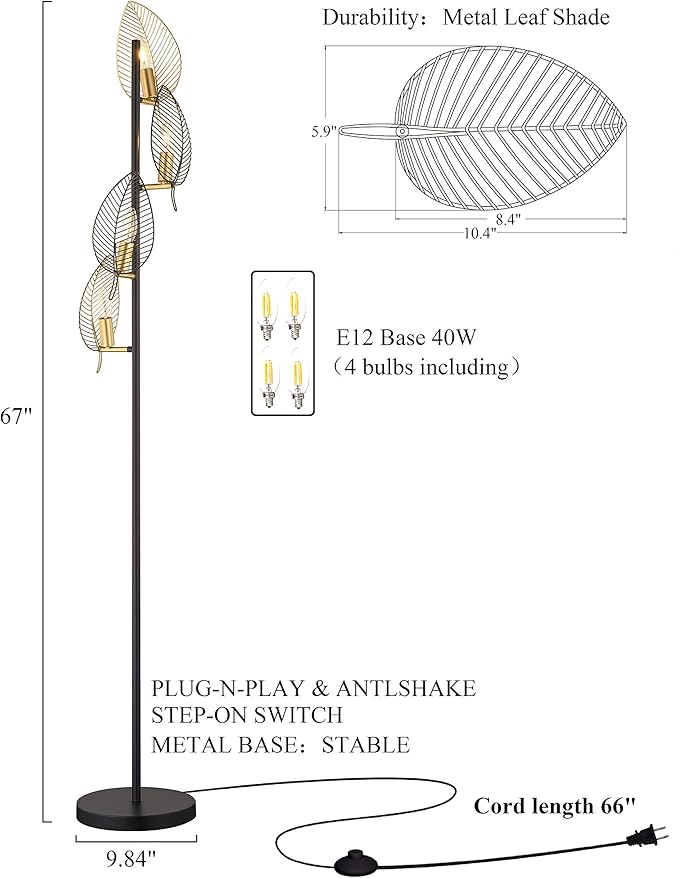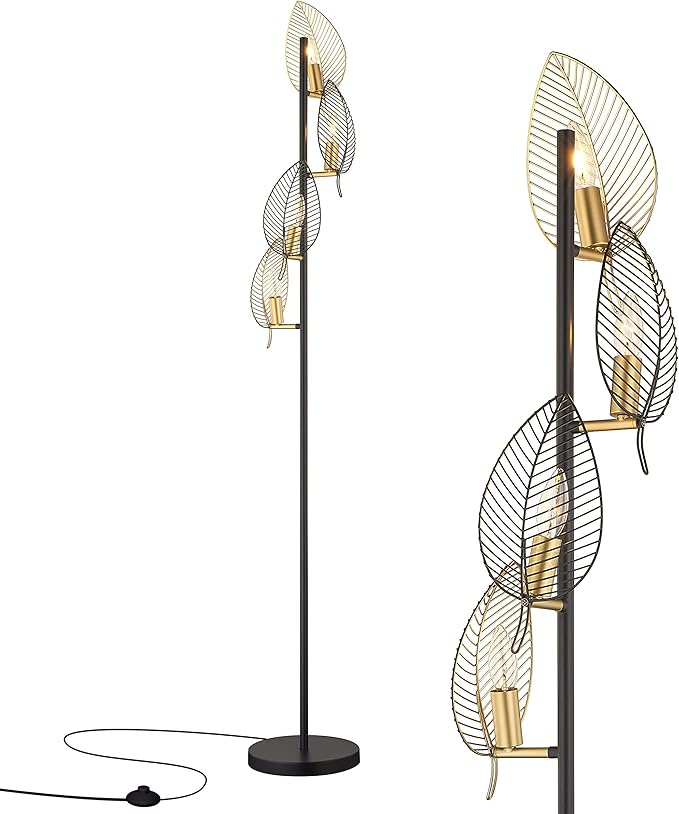 About This Modern floor lamp with 4 gold leaves shades: Made from durable metal with a painted black and gold...