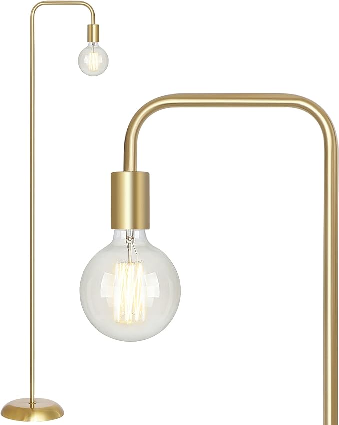 QiMH Industrial Floor Lamp with Light Bulb, Metal Standing Tall Modern Brushed Gold Led Living Room Lamp for Home Decor,Bedroom,Reading,Office(E26 Socket,Foot Switch)