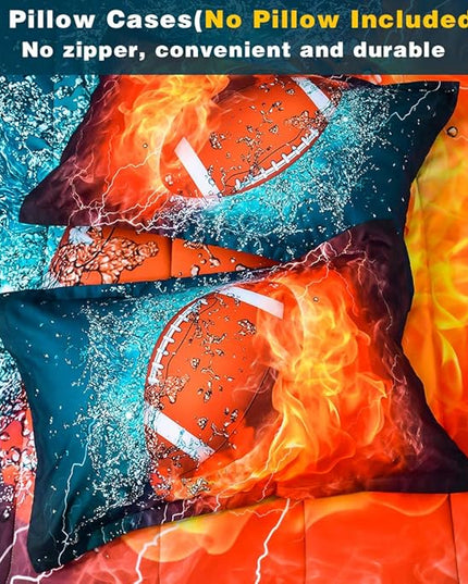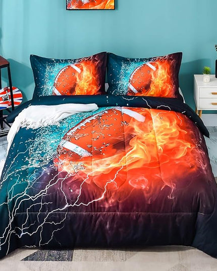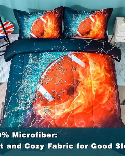 Ondency Football Comforter Set Full (79x90 Inch), 3 Pieces(1 Football Comforter, 2 Pillowcases) 3D Sport Microfiber Football Comforter Set Bedding Set for Boys Kids