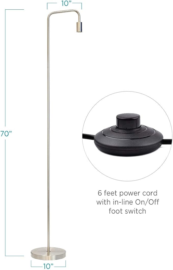 O'Bright Industrial Floor Lamp for Living Room, Metal Lamp, 70 Inches, E26 Socket, Minimalist Design for Decorative Lighting, Stand Lamp for Bedroom, Office, Brushed Nickel
