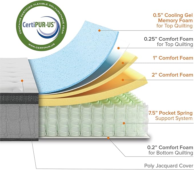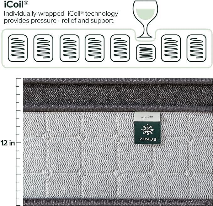 ZINUS 12 Inch Comfort Support Cooling Gel Hybrid Mattress, Twin, Euro Top Innerspring Mattress, Motion Isolating Pocket Springs, Mattress in A Box