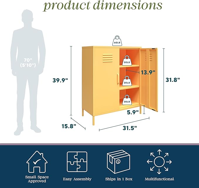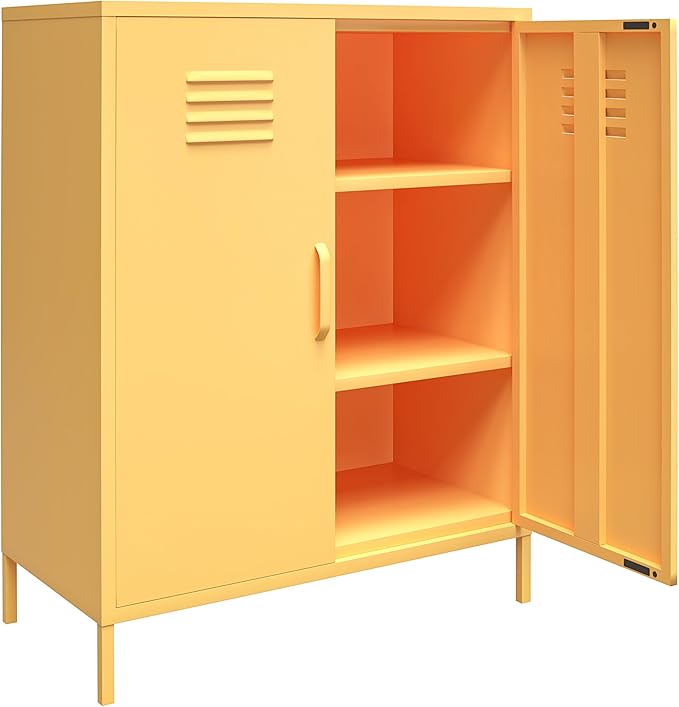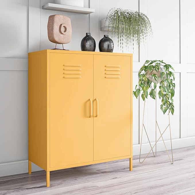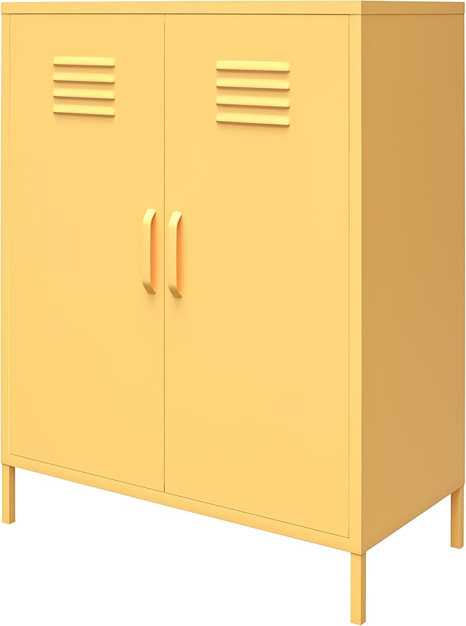 Novogratz Cache 2 Door Metal Locker Storage, Yellow Cabinet