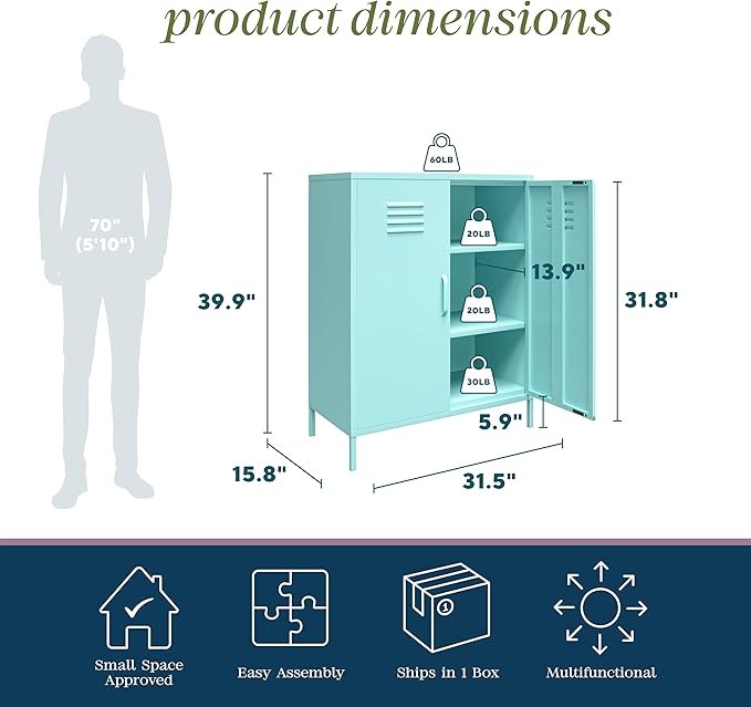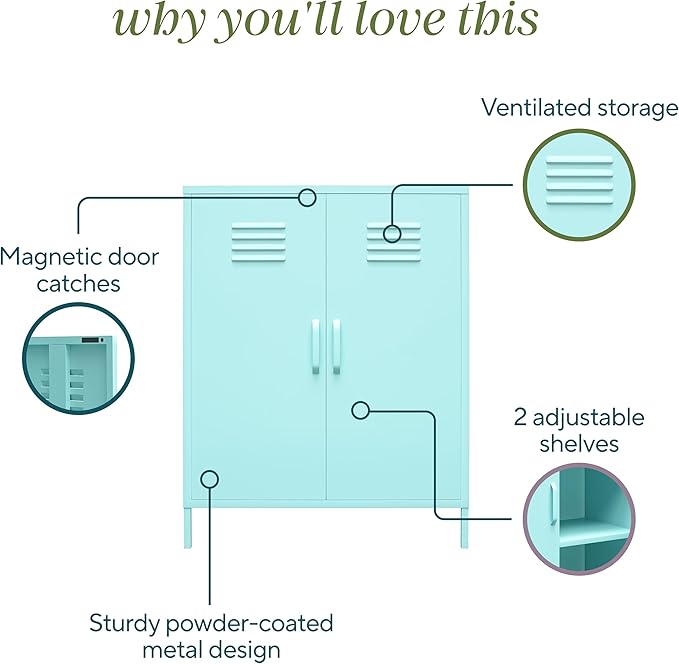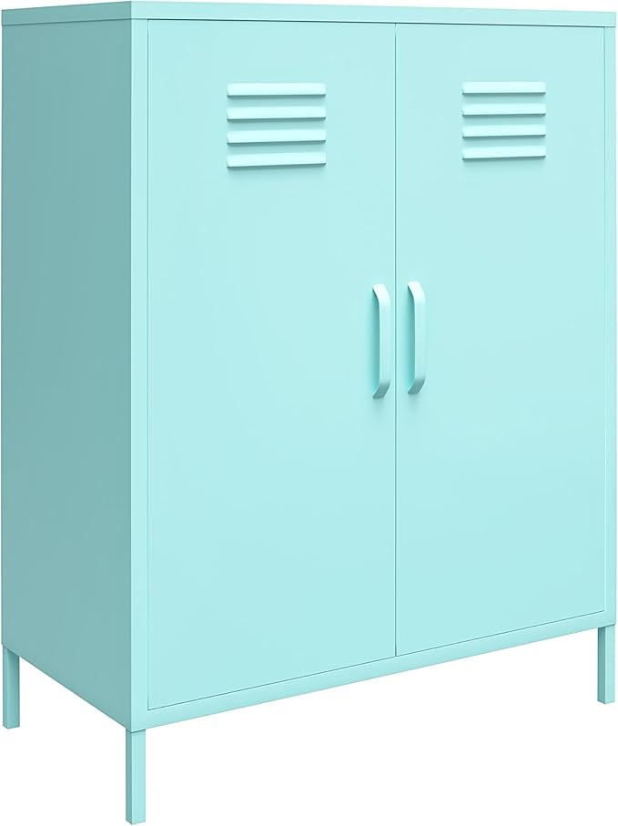Novogratz Cache 2 Door Metal Locker Storage, Mint Cabinet