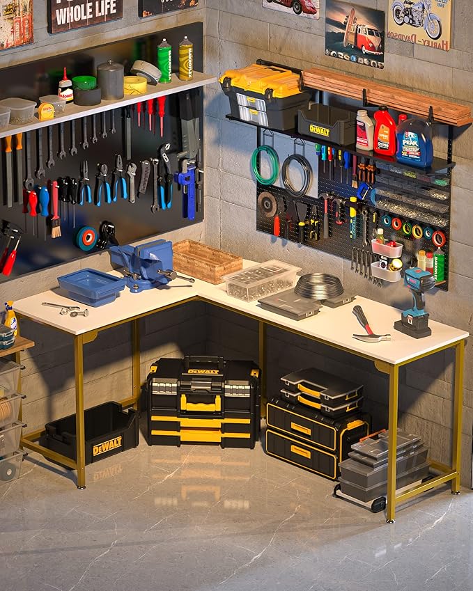 Teraves Modern L-Shaped Desk 66'' Corner Computer Desk Home Office Study Workstation Wood & Steel PC Laptop Gaming Table