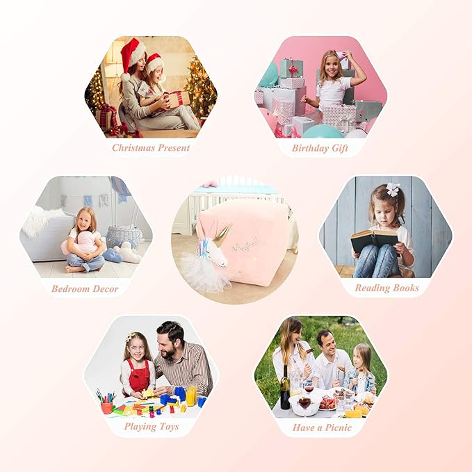 Pink Unicorn Bean Bag Chair for Girls Room Decorations, Toy Storage Beanbag Chairs, Velvet Fabric Super Soft, Extra Large Size Cover Only