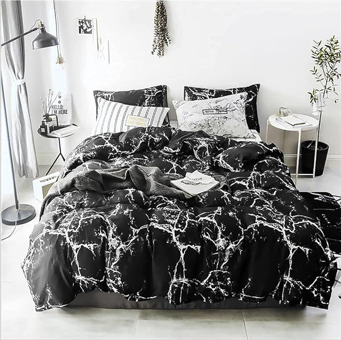 Black Comforter Set Boys Black Marble Bedding Set Twin Men Black Marble Blanket Lightweight Soft Teen Boy Girls Black Marble Quilt Set 3 PCs Bed Comforter Set Breathable Black Bedding Set