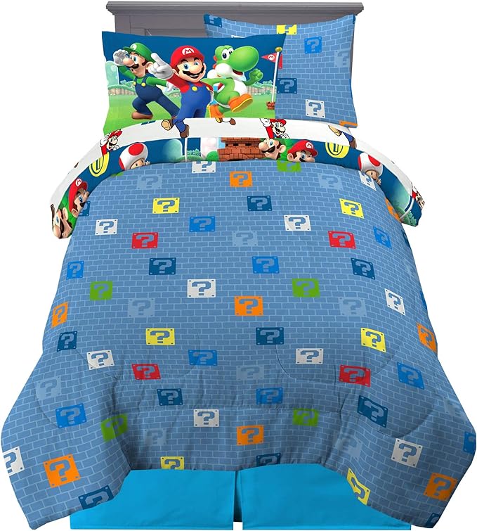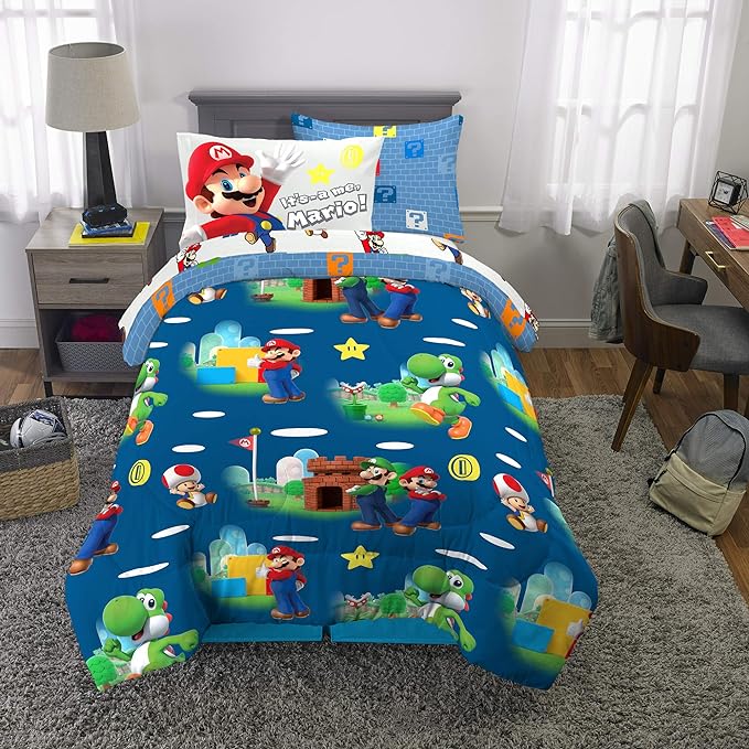 Franco Kids Bedding Super Soft Comforter and Sheet Set with Sham, 5 Piece Twin Size, Mario
