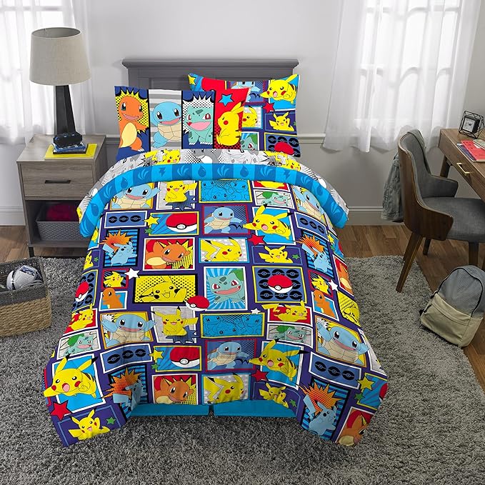 Franco Kids Bedding Super Soft Comforter and Sheet Set with Sham, 5 Piece Twin Size, Pokemon