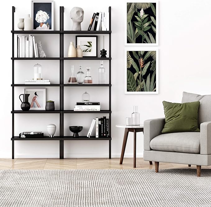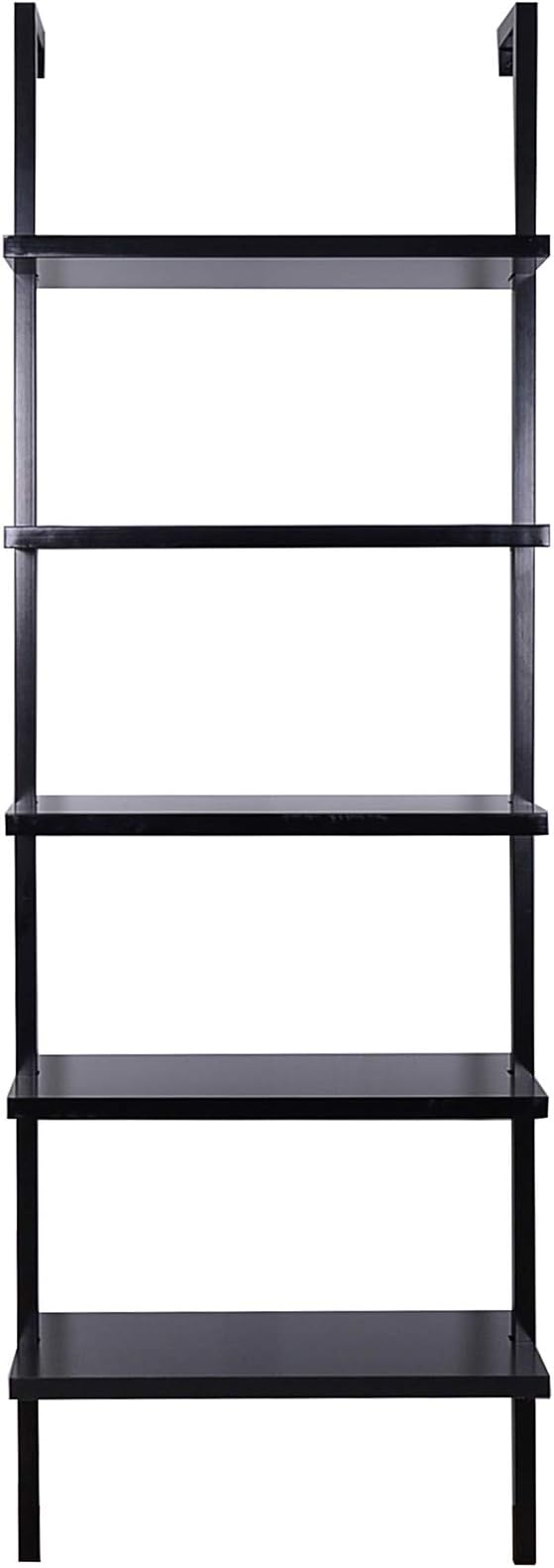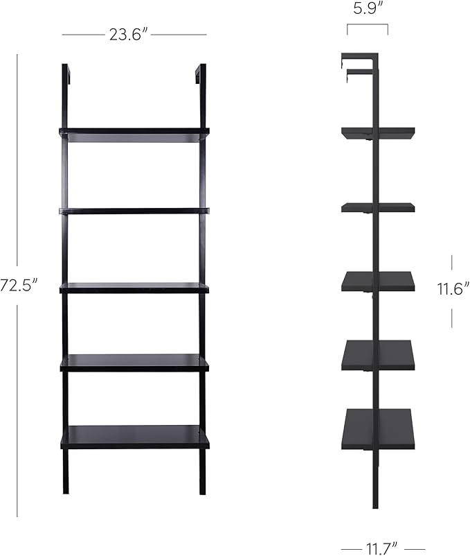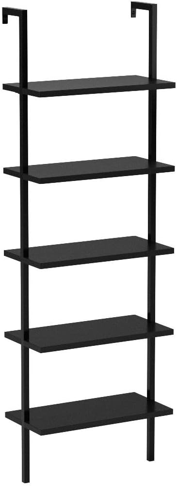 Nathan James Theo 5-Shelf Black Modern Bookcase, Open Wall Mount Ladder Bookshelf with Industrial Metal Frame