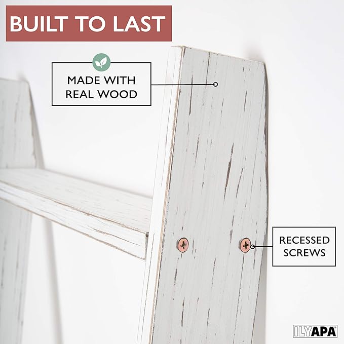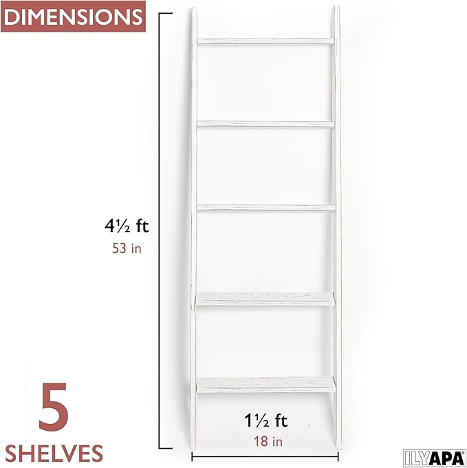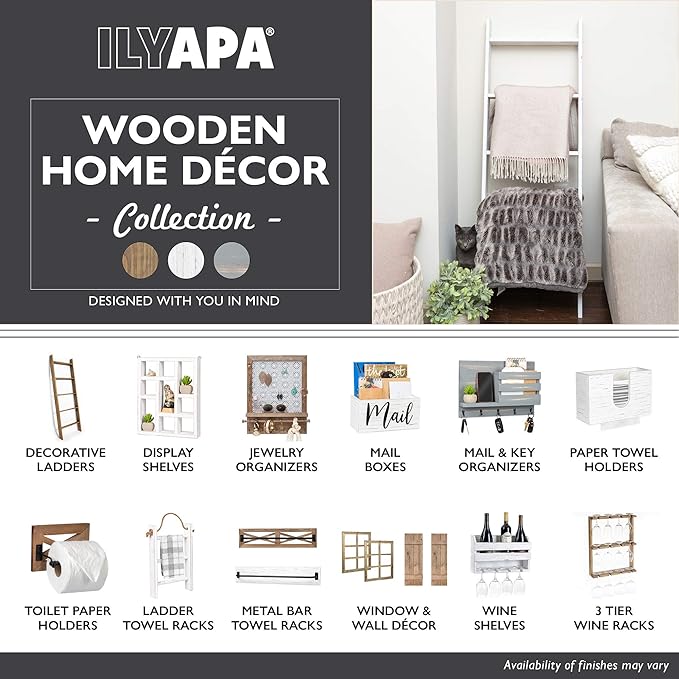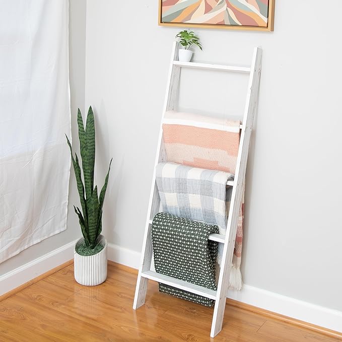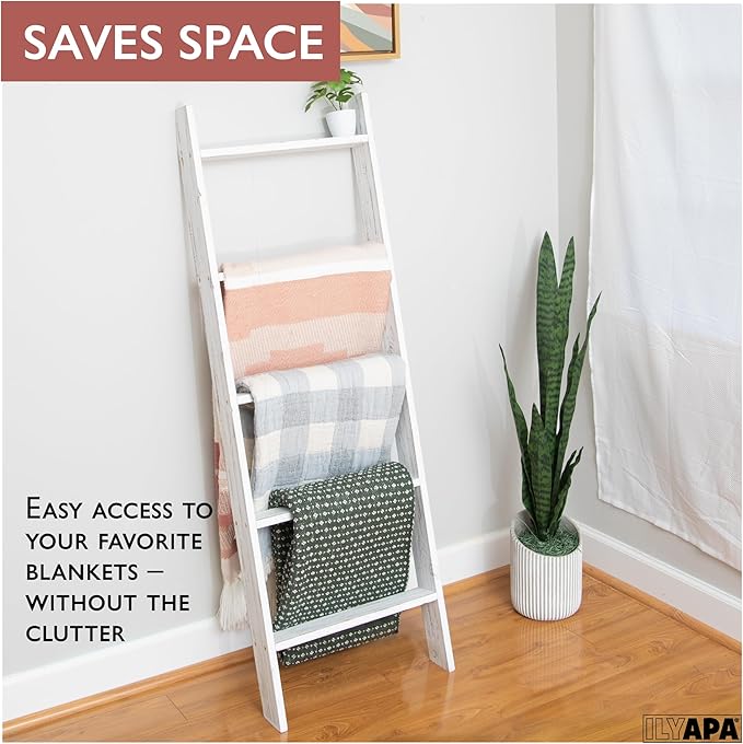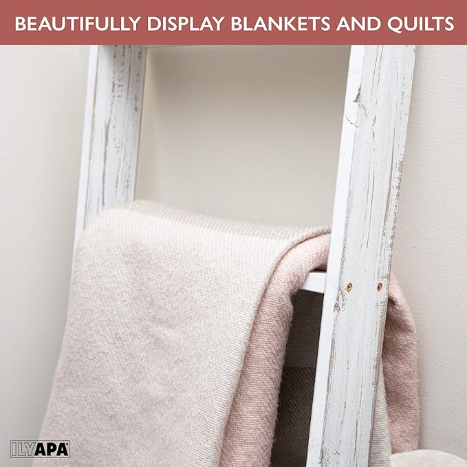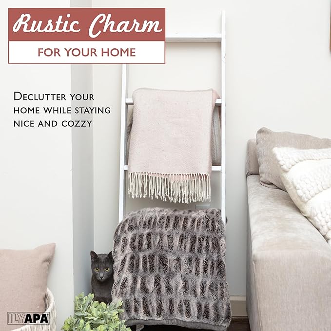 Ilyapa Blanket Ladder for Living Room, Towel Holder Stand - 54x18 Rustic Decorative Quilt Ladder, Blanket Ladders for Living Room Farmhouse, White Weathered Wood, Farmhouse Decor Living Room