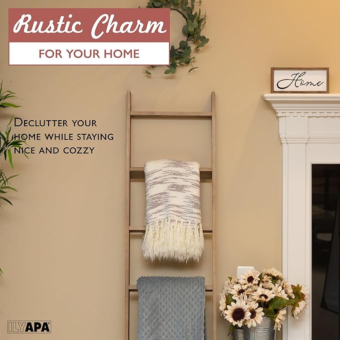Ilyapa Blanket Ladder for Living Room, Ladder Blanket Holder - Rustic Decorative Quilt Ladder, Barnwood Blanket Ladders for Living Room, Farmhouse Decor, Quilt Ladder