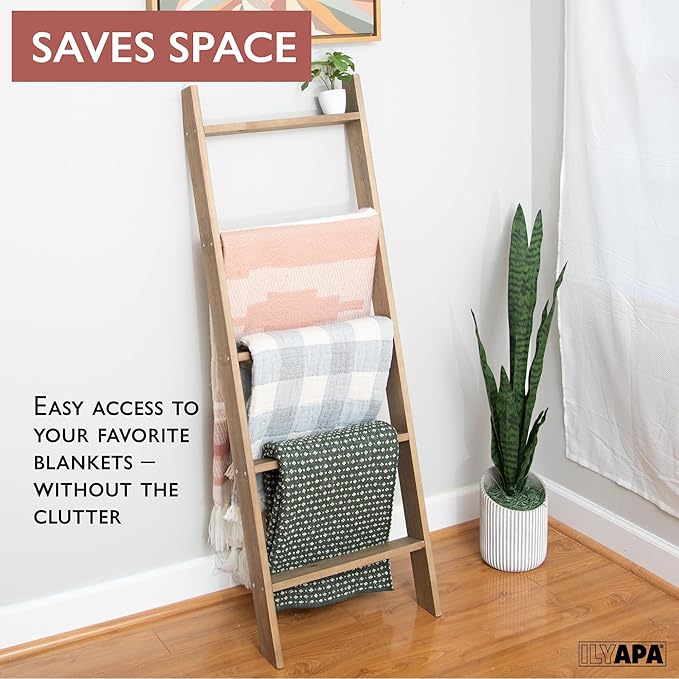 About This BEAUTIFULLY DISPLAY YOUR BLANKETS & QUILTS - Ilyapa’s decorative wooden ladder showcases and provides easy access to your...