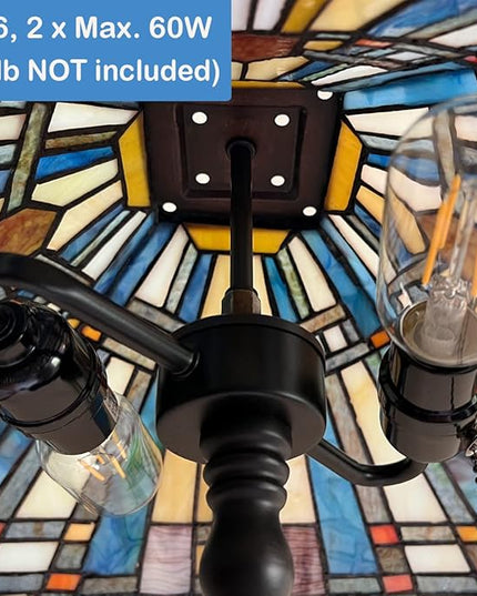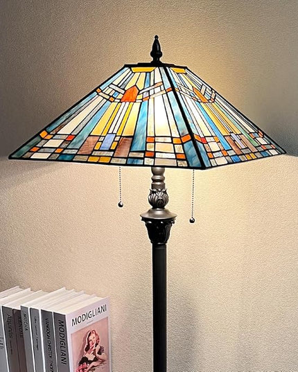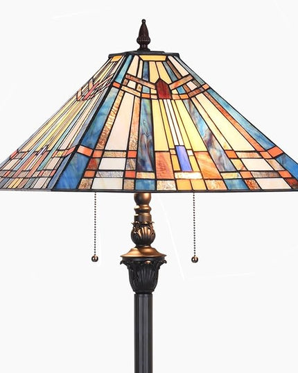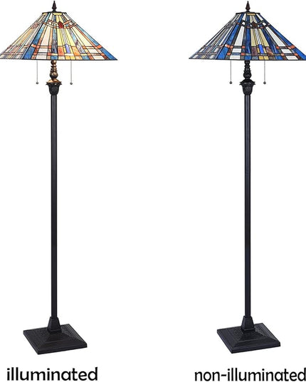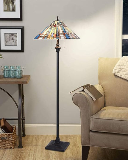 Tiffany Floor Lamp,Stained Glass Lamp Shade,Vintage Antique Style Standing Double Light for Living Room & Bedroom