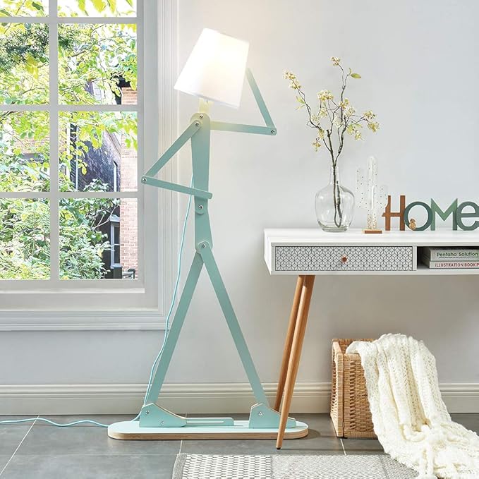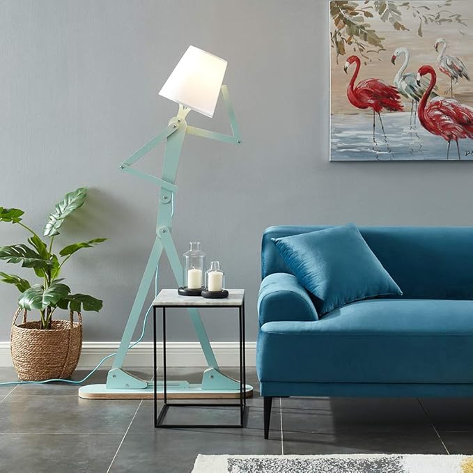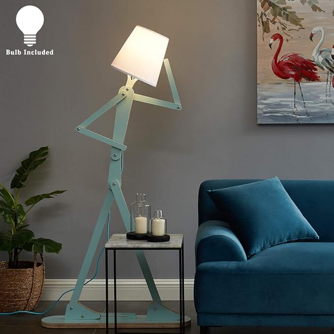 Cool Tall Decorative Floor Lamp Unique Aqua Blue Color Standing Adjustable Corner Reading Wood Lights for Living Room Kids Bedroom Office - LED Bulb Included (Green)