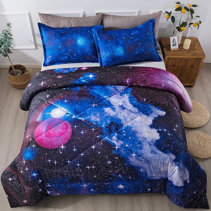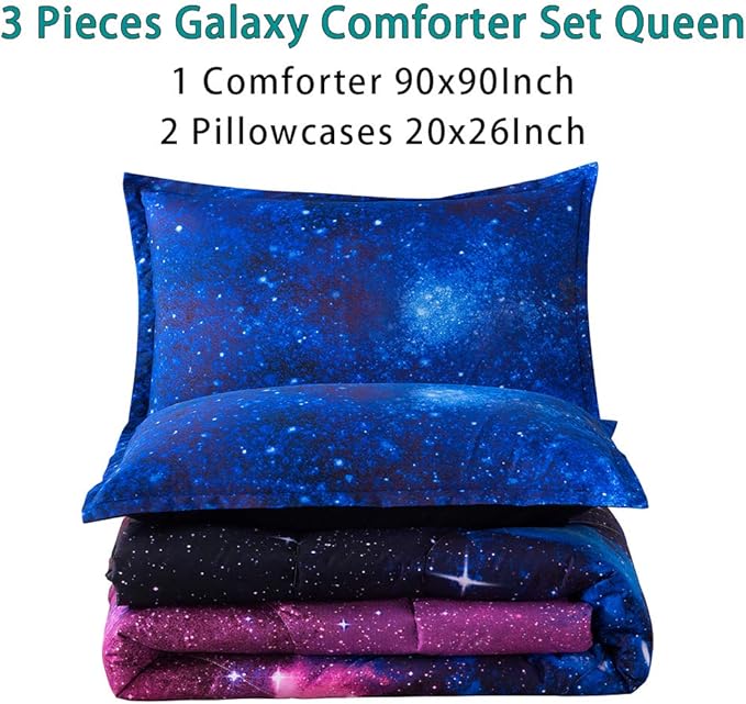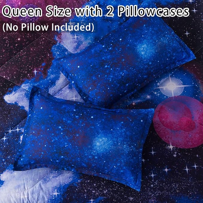 Litanika 3D Galaxy Comforter Queen(90x90lnch), 3 Pieces(1 Galaxy Comforter, 2 Pillowcases), Universe Cloud Outer Space Comforter, Microfiber Bedding Set for Boys Kids
