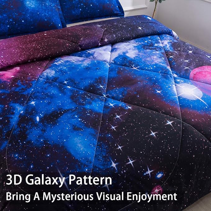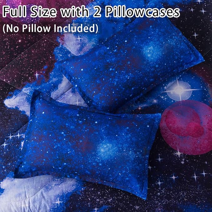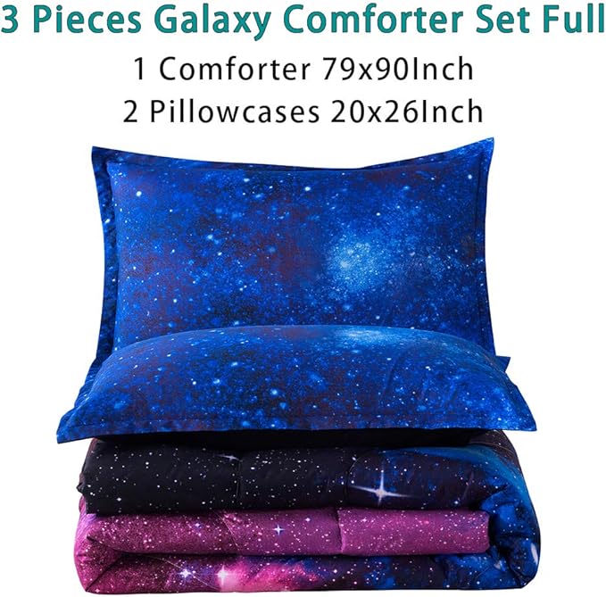 Litanika 3D Galaxy Comforter Full(79x90lnch), 3 Pieces(1 Galaxy Comforter, 2 Pillowcases), Universe Cloud Outer Space Comforter, Microfiber Bedding Set for Boys Kids