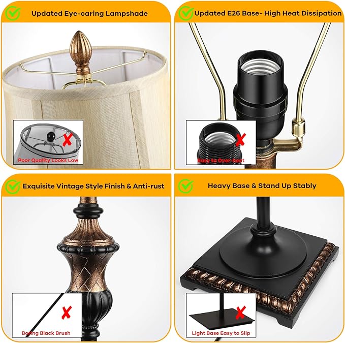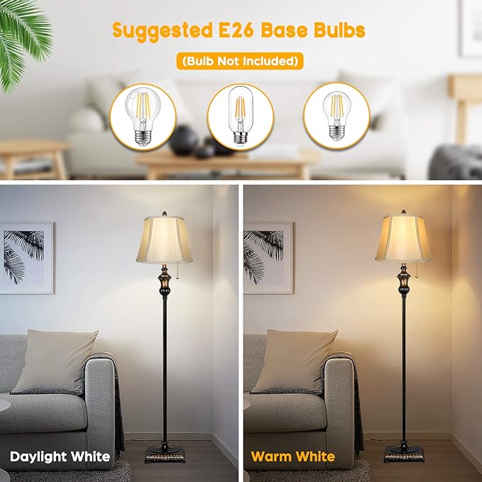 TOBUSA Traditional Floor Lamp, Classic Standing Lamp with Bronze Fabric Shade, Vintage Elegant Tall Pole Lamp for Living Room Bedroom Office Reading, Rustic Upright Floor Lights , Pull Chain Switch