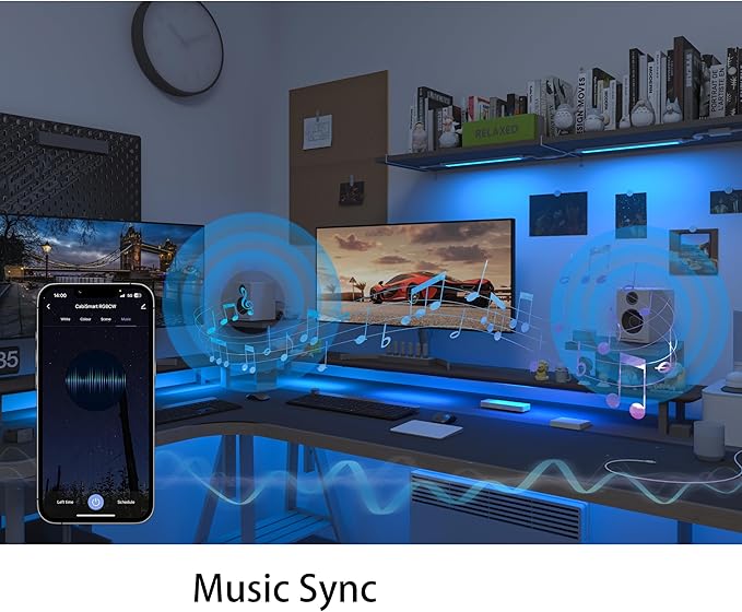 Smart Under Cabinet Lighting Strip Lights White and Multi Color Work With Amazon Alexa Google Home Dimmable for Show Case, TV Back Lights, Kitchen Counter, Book Case, Under Bed (3 Lights Bar kit)
