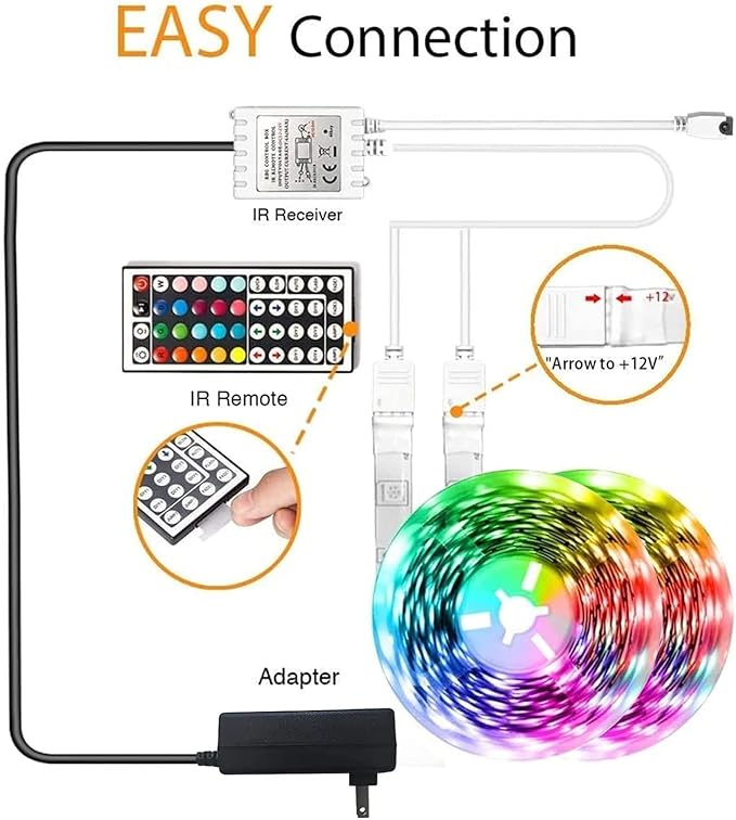 phopollo 65.6FT Led Lights for Bedroom, 5050 Color Changing Led Strip Lights with 44-Key Remote and 12v Power Supply, Led Lights Strip for Home Decoration.
