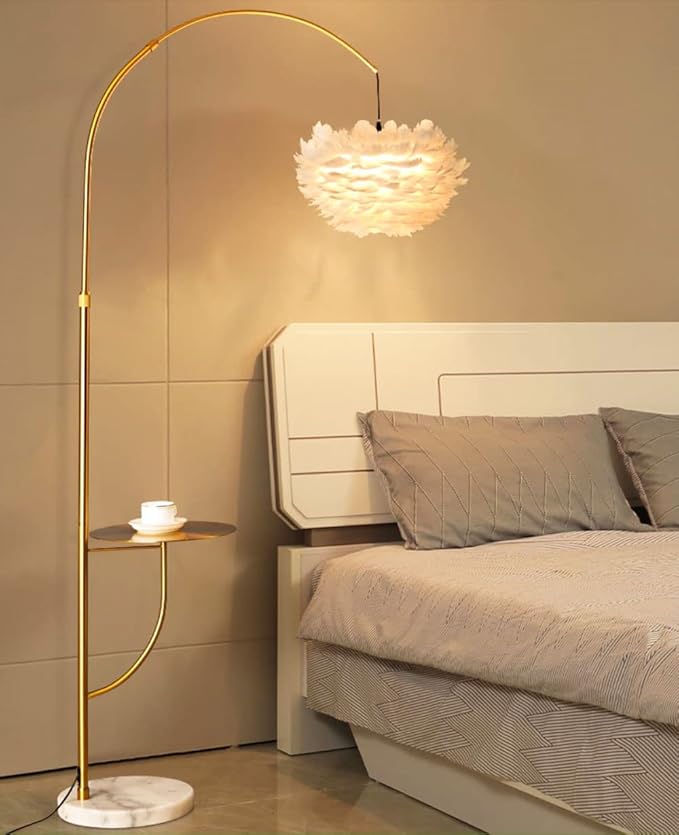 White Feather Floor Lamp with Table,Great Floor Light Height Adjustable (Gold)