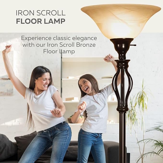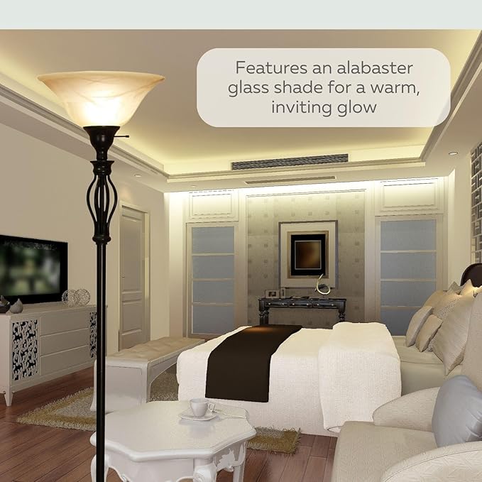 LIGHTACCENTS Bronze Floor Lamp with Alabaster Glass Bowl Shade for Living Room Decor - Torchiere Floor Lamps- Tall Floor Lamp - Traditional Iron Scrollwork Unique Floor Lamp for Living Room