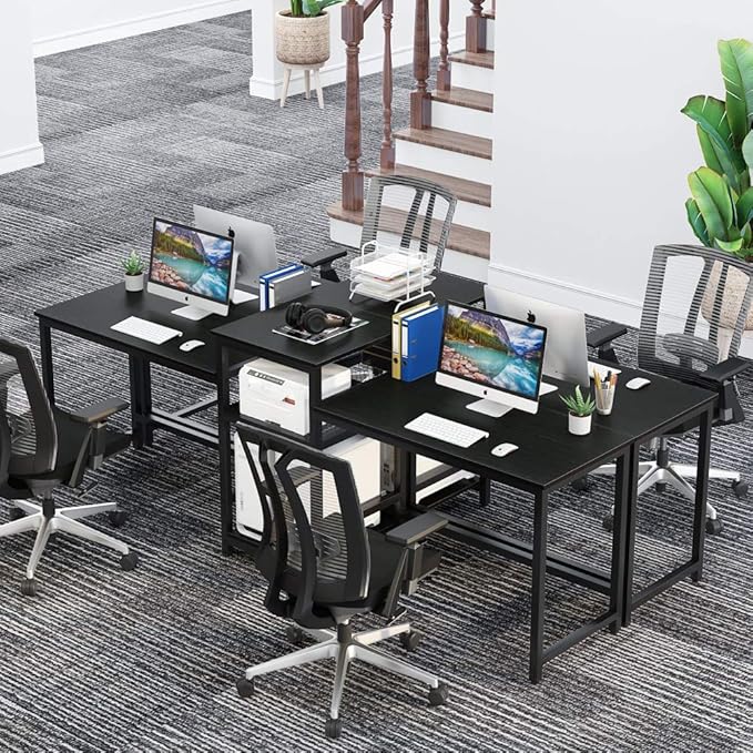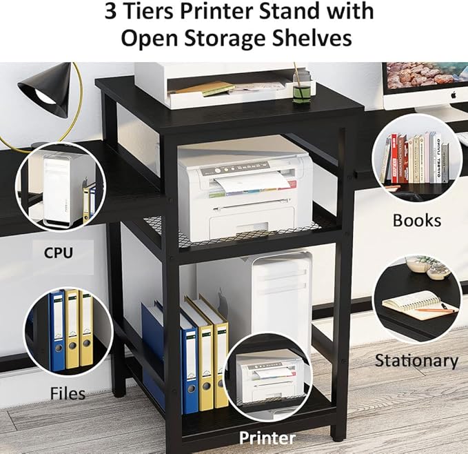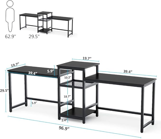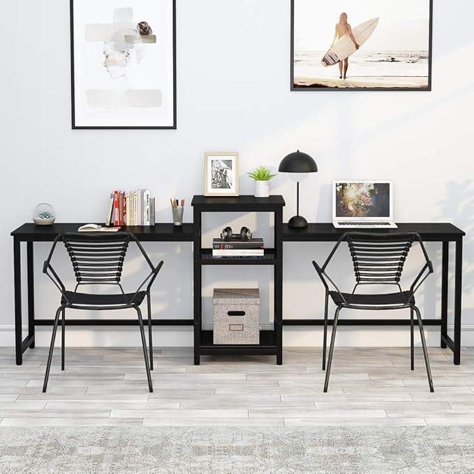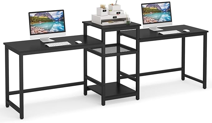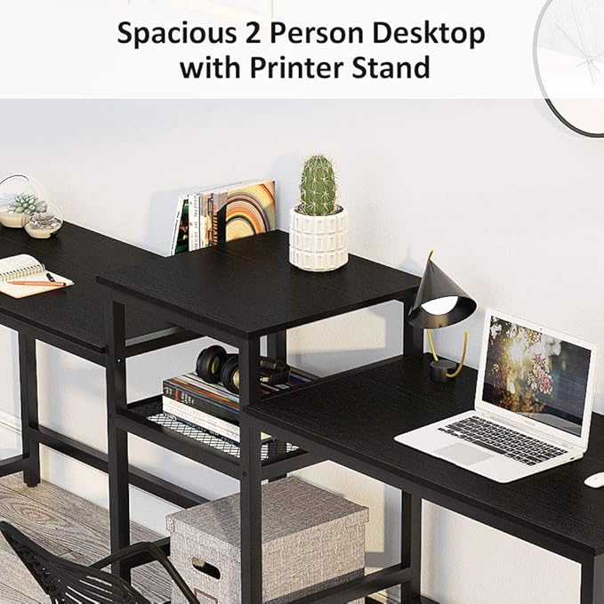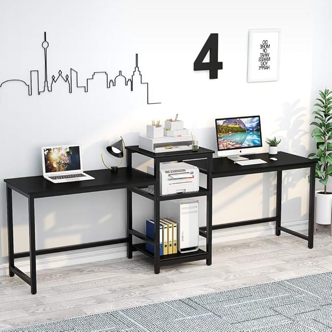Tribesigns 96.9" Double Computer Desk with Printer Shelf, Extra Long Two Person Desk Workstation with Storage Shelves, Large Office Desk Study Writing Table for Home Office (Black)