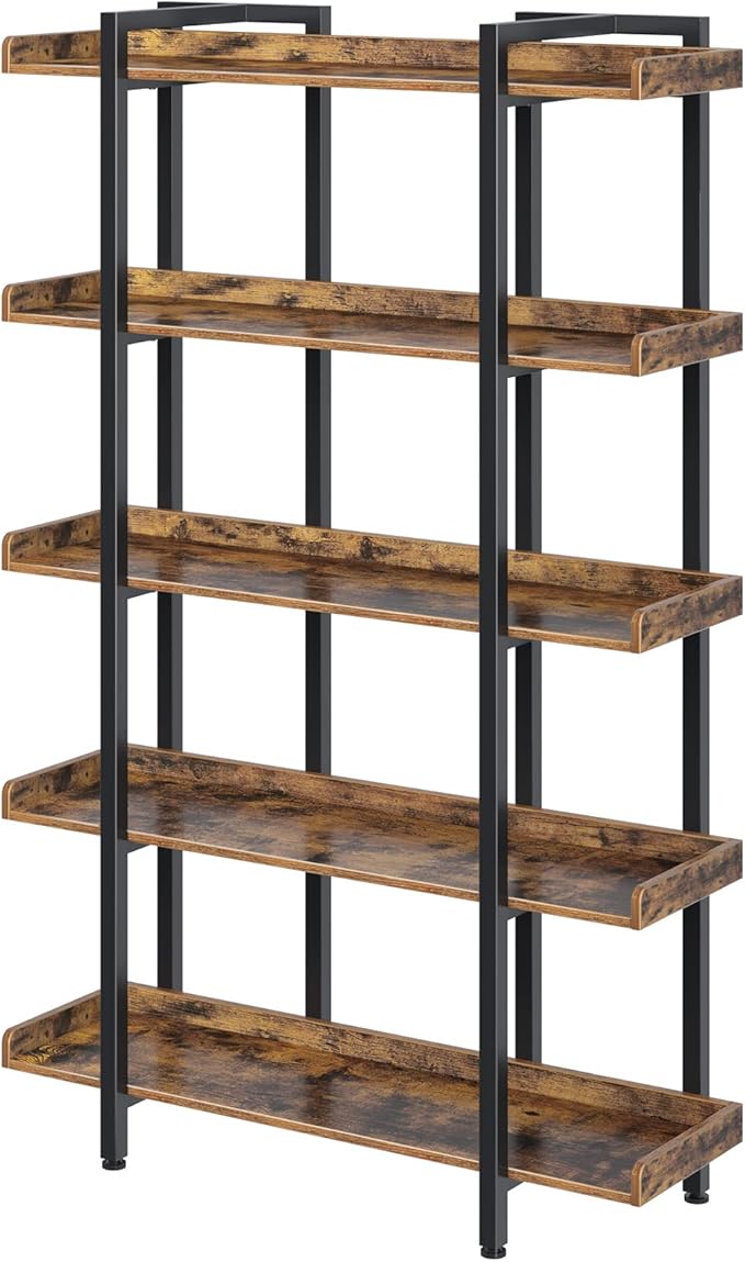 Rolanstar Bookshelf 5-Tier, 71.8’’H Industrial Book Shelf, Large Bookcases and Bookshelves with Open Shelves, Open Display Shelves with Metal Frame for Living Room Bedroom Home Office, Rustic Brown