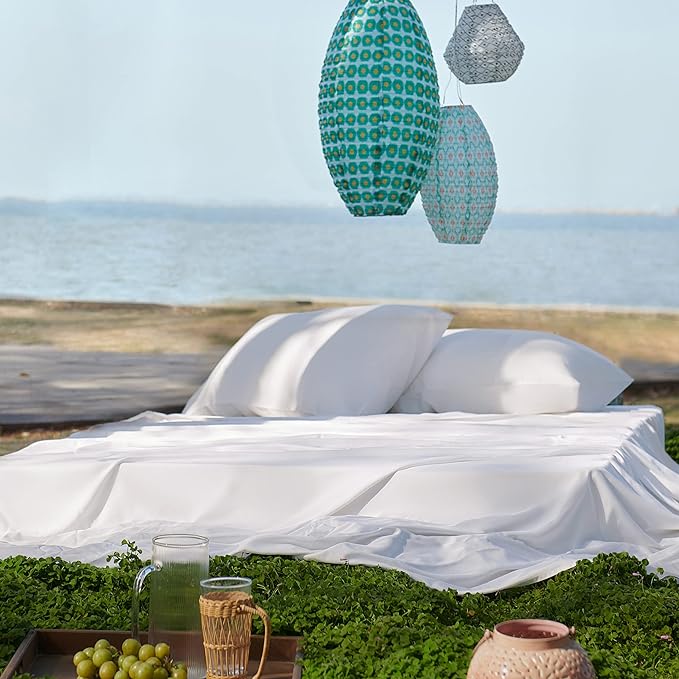 Bedsure California King Sheet Sets, Cooling Sheets, Rayon Derived from Bamboo, Deep Pocket Up to 16", Breathable & Soft Bed Sheets, Hotel Luxury Silky Bedding Sheets & Pillowcases, White