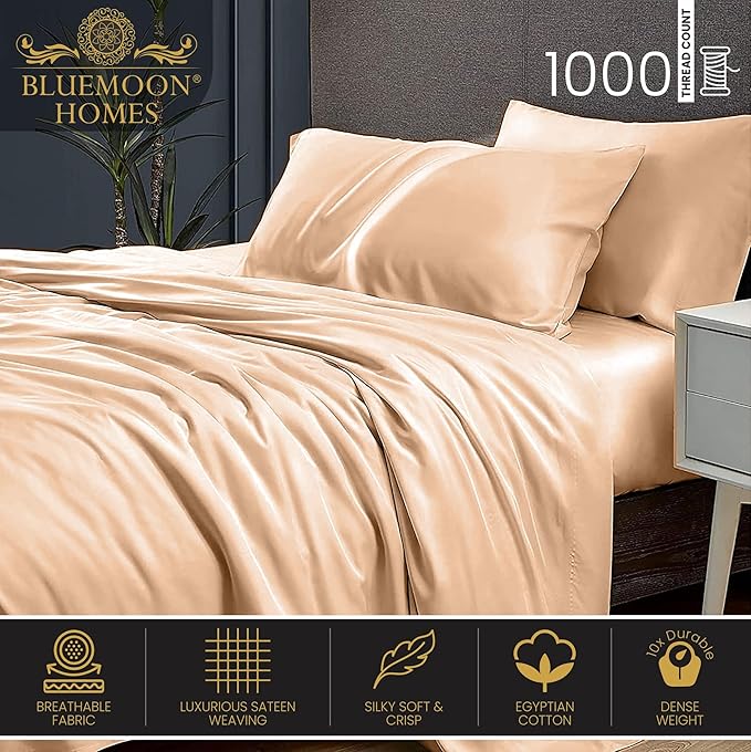 Bluemoon Homes 100% Egyptian Cotton Sheets King Size Deep Pocket - 1000 Thread Count Bed Sheets King Size Set, 4 Pc King Bed Size Sheets Set, Fits Upto 18' Mattress, Luxury Bedding, Sand