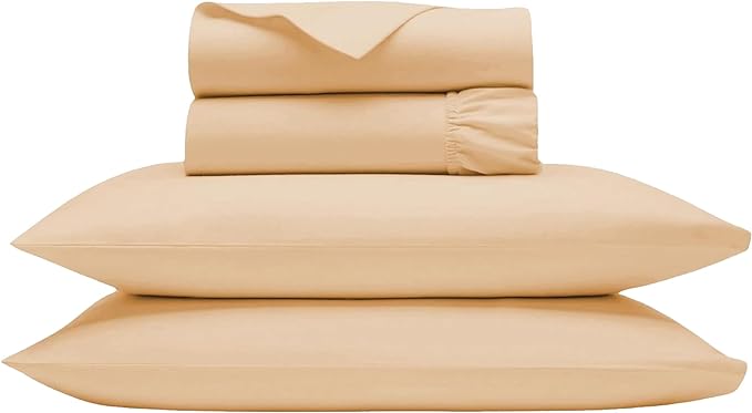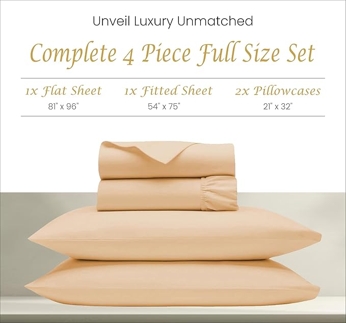 Bluemoon Homes 1000 Thread Count Sheets - 100% Egyptian Cotton Sateen Bed Sheets Deep Pocket, Fits Mattress upto 18", 4 Pc Smooth Full Bedsheet Set, Cool Crisp and Durable Bed Linen (Full, Sand)