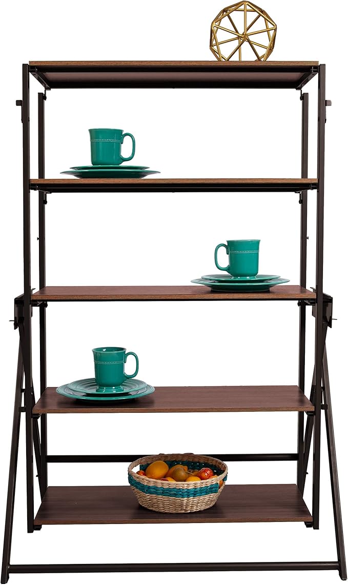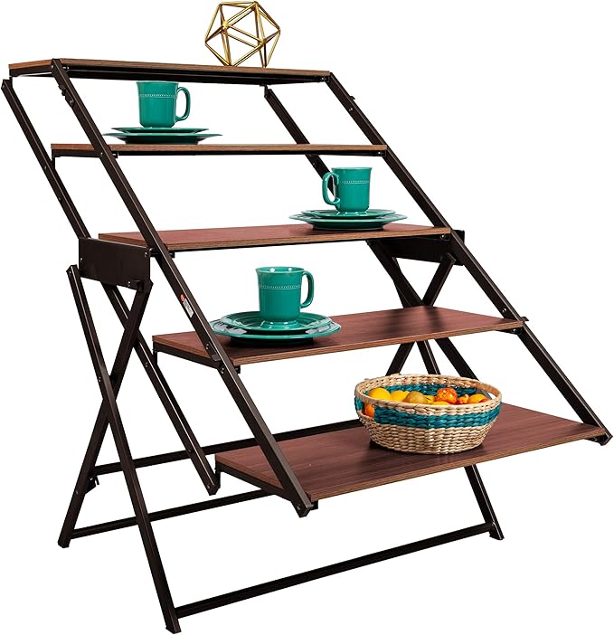 Origami modern 2 in 1 shelf to table Style, Organizer Deco Rack magically turn to a table/desk in a second,Fully assembled, Vintage Bronze/Oak/US patent pending (STT-VBWOAK)