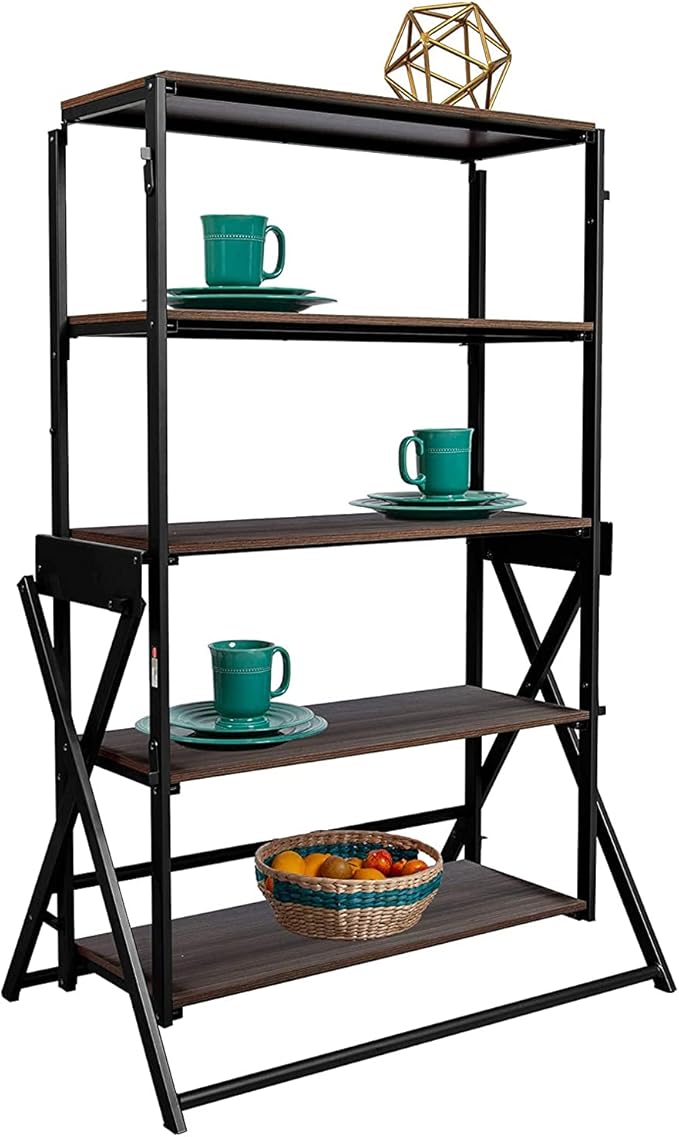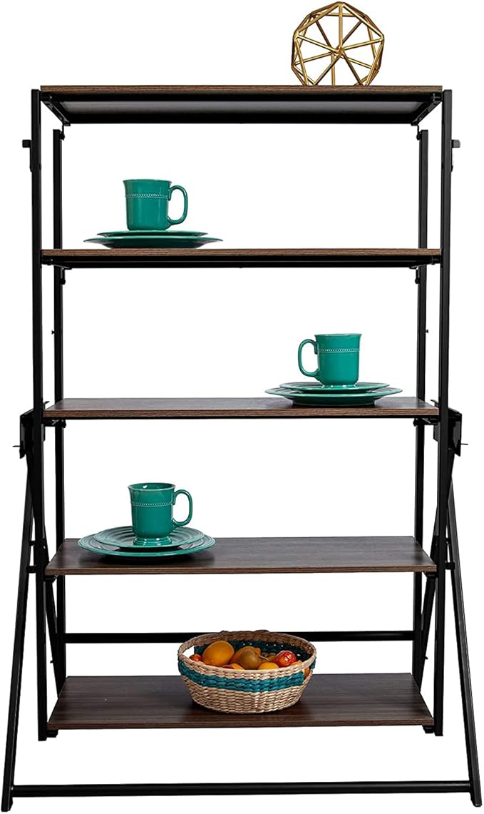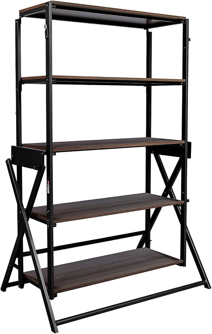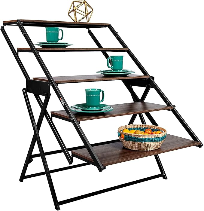 About This 50% Powder Coated Iron,50% Mdf 2-IN-1 SHELF TO TABLE: 5-tier storage shelf magically converts into a long multi-purpose...
