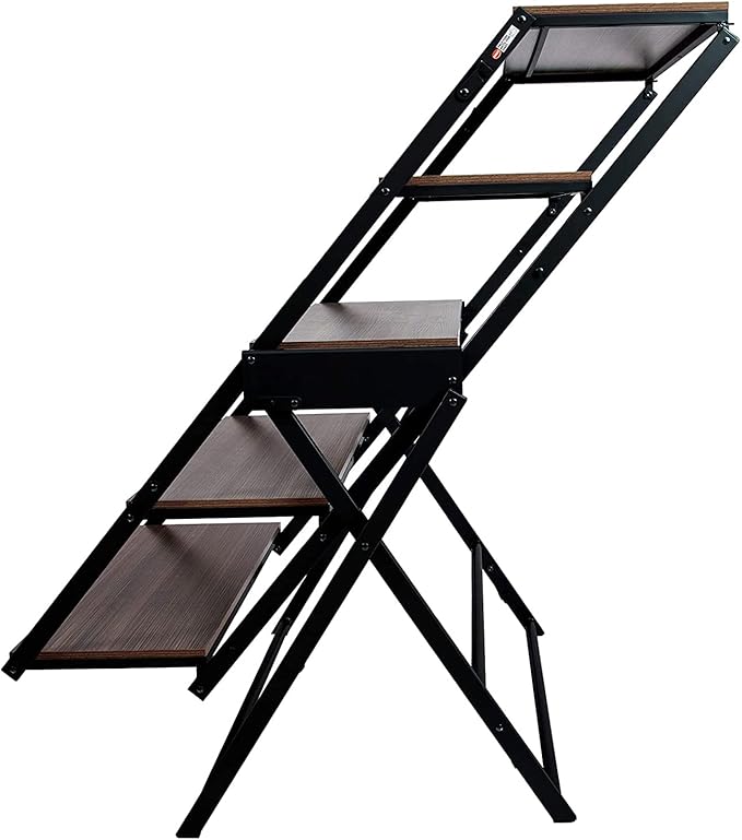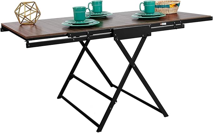 Origami modern 2 in 1 shelf to table Style, Organizer Deco Rack magically turn to a table/desk in a second, fully assembled, patent pending, Black/walnut (STT-WLN)