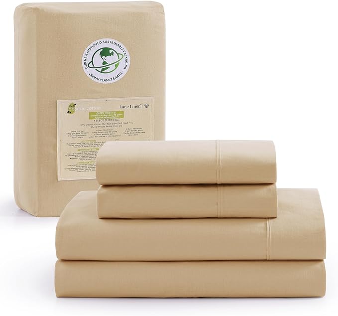 LANE LINEN 100% Organic Cotton Linen Full-Sheets Set 4-Piece Pure Long Staple Percale Weave Soft Bedding Sheets for Bed Breathable Fits Mattress Upto 15" Deep