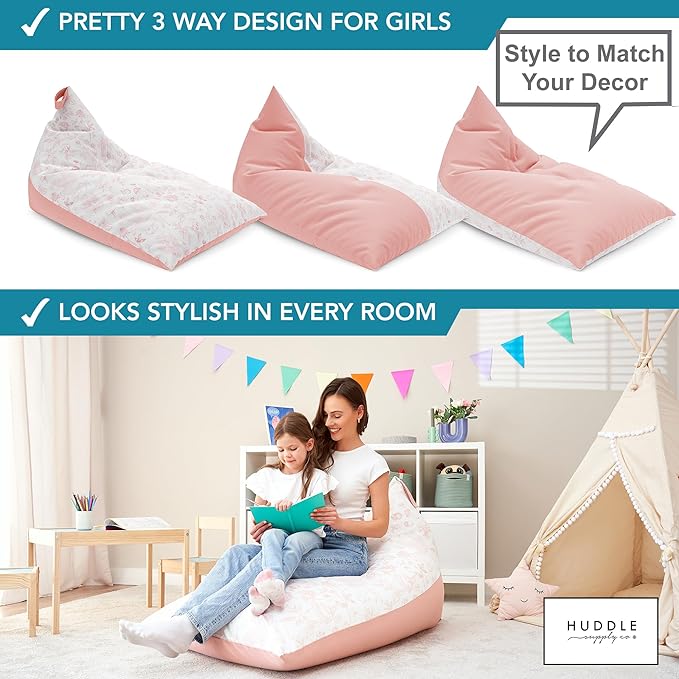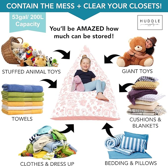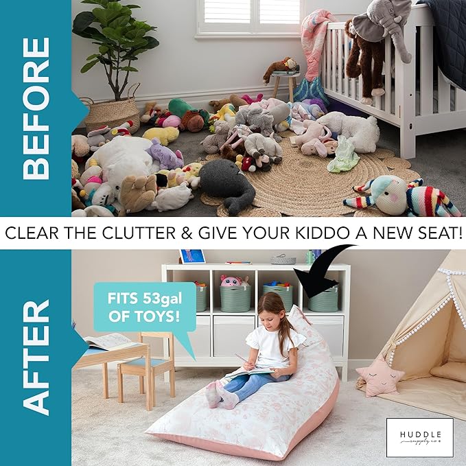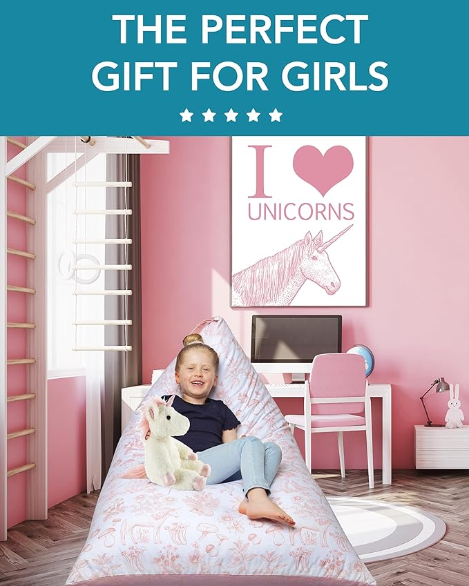Stuffed Animal Bean Bag Storage - Machine Washable Bean Bag Chair for Kids - Extra Large Cover for Stuffing with Plush Toys, Pillows, Soft Items - Stuffed Animal Holder Girls - Pink Unicorn Mermaid