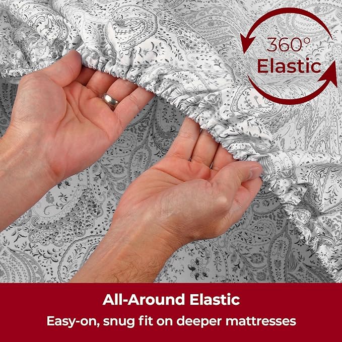 Mellanni Extra Deep Full Sheets - 4 PC Iconic Collection Bedding Sheets & Pillowcases - Hotel Luxury, Ultra Soft, Cooling Bed Sheets - Extra Deep Pocket up to 21 inch (Full, Paisley Gray)