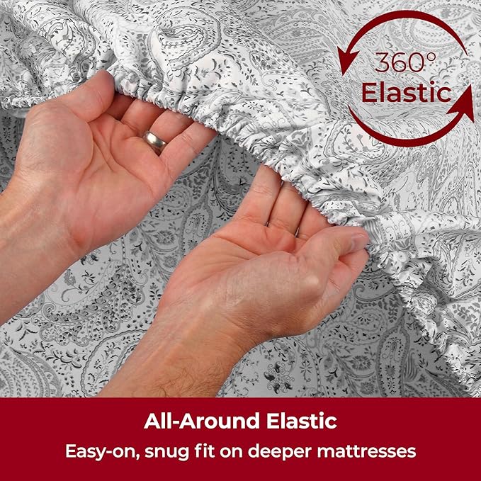 Mellanni Extra Deep King Sheets - 4 PC Iconic Collection Bedding Sheets & Pillowcases - Hotel Luxury, Ultra Soft, Cooling Bed Sheets - Extra Deep Pocket up to 21 inch (King, Paisley Gray)