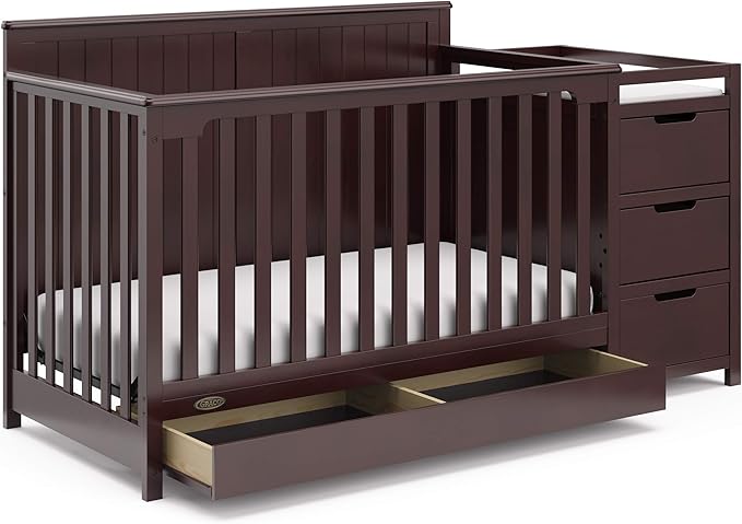 Graco Hadley 5-in-1 Convertible Crib and Changer with Drawer (Espresso) – GREENGUARD Gold Certified, Crib and Changing Table Combo with Drawer, Includes Baby Changing Pad, Converts to Full-Size Bed