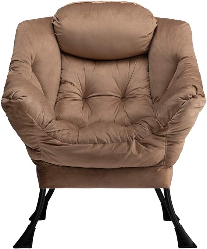 HollyHOME Modern Fabric Large Lazy Chair, Accent Oversized Comfy Reading Chair, Thick Padded Cozy Lounge Chair with Armrest, Steel Frame Leisure Sofa Chair for Living Room, Bedroom, Dorm, Dark Brown