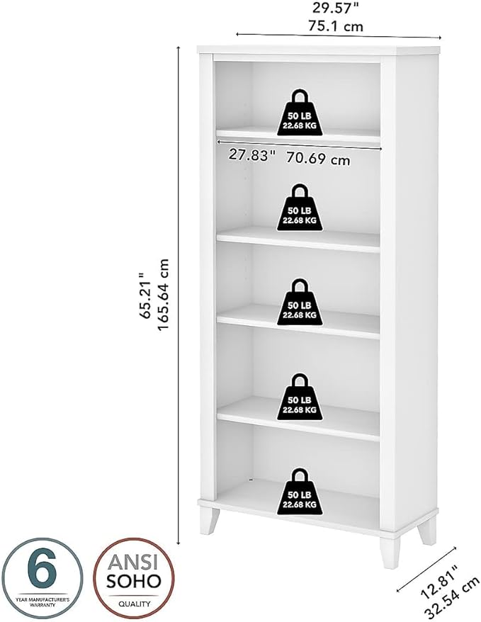 Bush WC81965 Somerset 5-Shelf 65-Inch H Bookcase, White